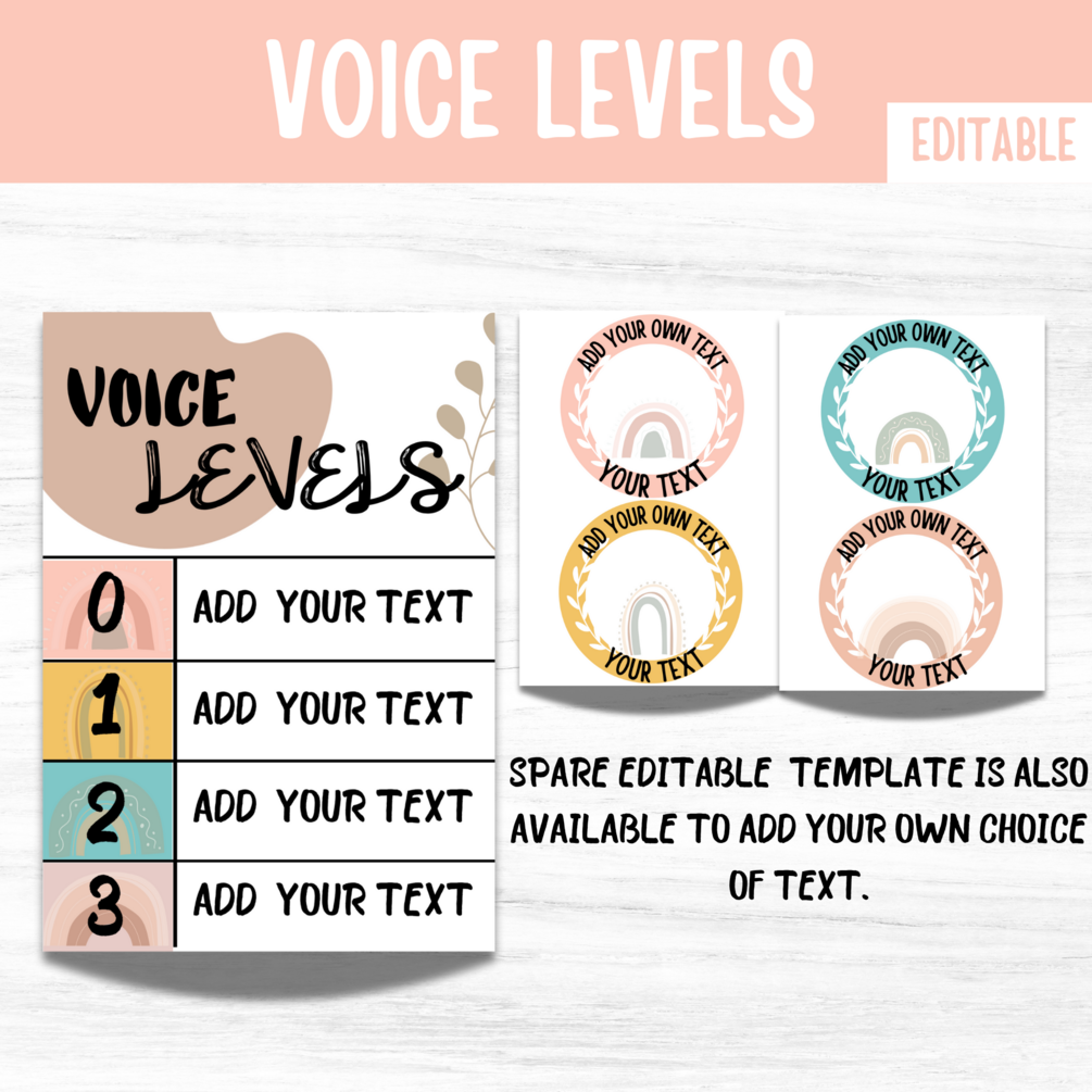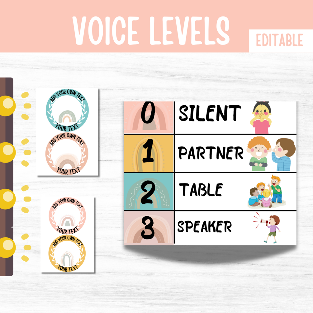 Ideal for teachers who want flexibility and creativity in their resources, this set is quick and easy to edit, download, and print. Keep your classroom organized while maintaining a unique, cohesive style with these customizable, ready-to-use voice level templates!"